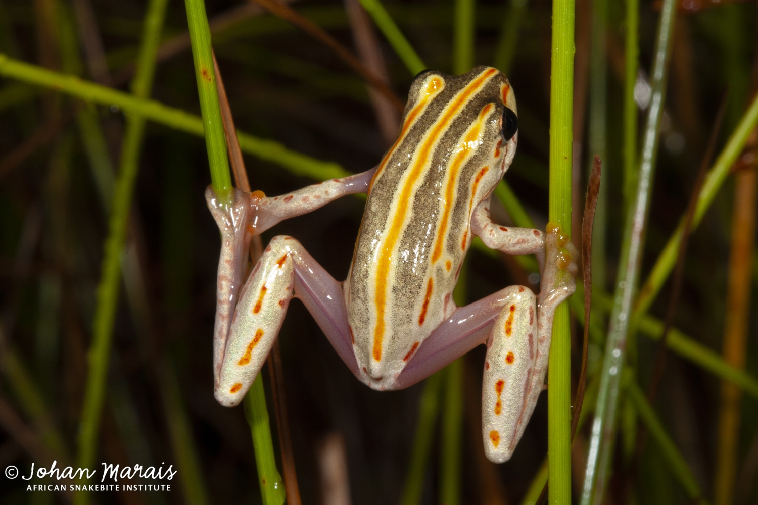 Painted Reed Frog (Hyperolius marmoratus) Full Name: Painted Reed Frog (Hyperolius marmoratus) Afrikaans Common Name: Marmerskilderbontrietpadda